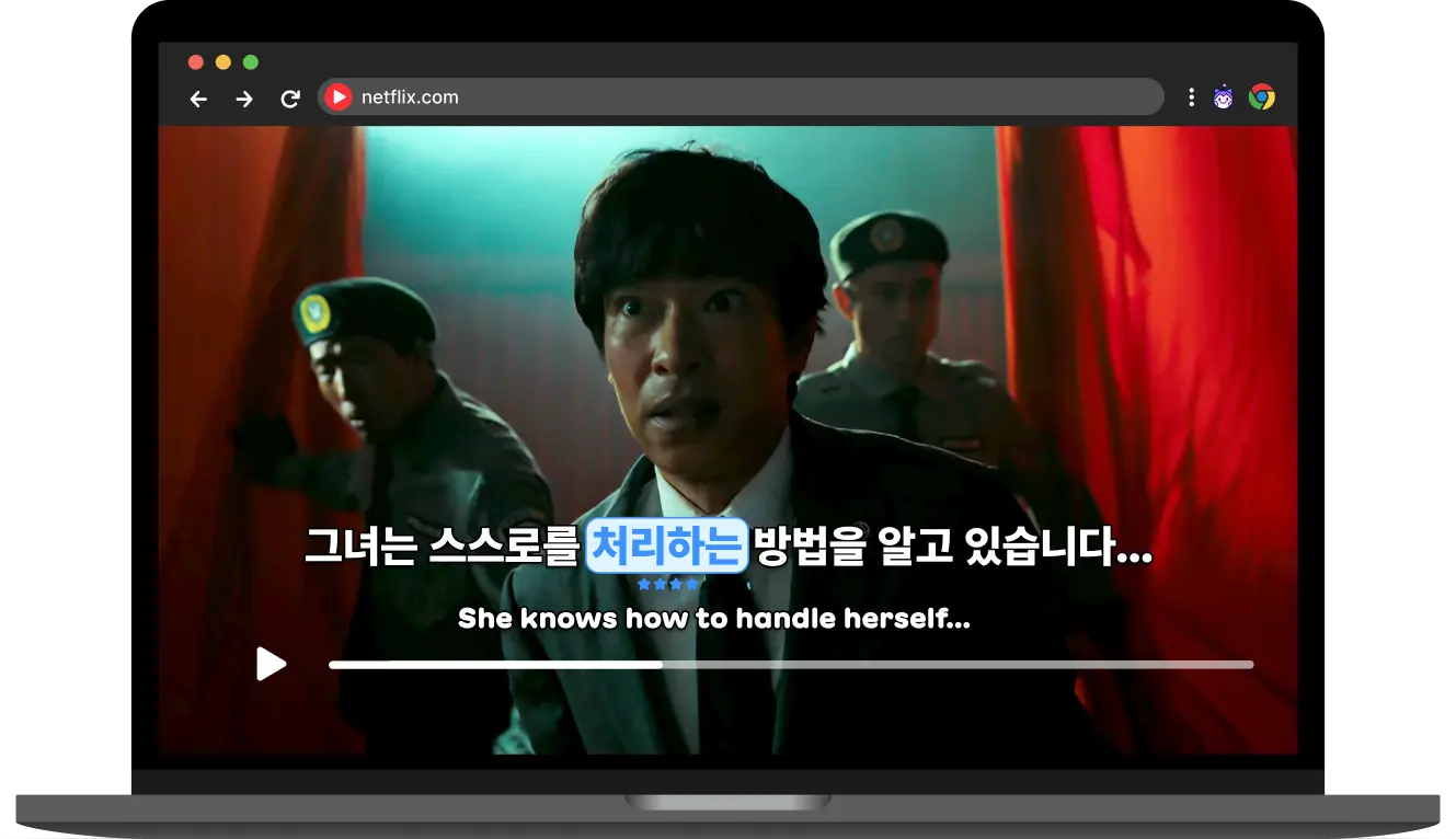 Click words in websites and subtitles to look up definitions, pronunciations, images, and ChatGPT AI generated explanations of words in context.