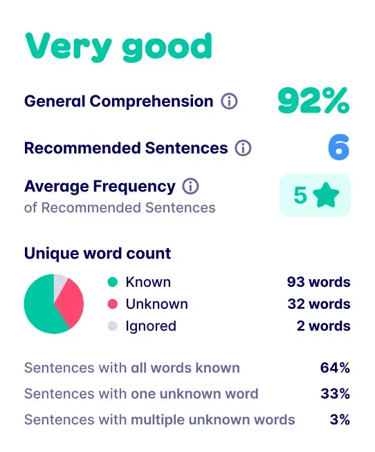 You first learn the most common words and grammar patterns that make up 80+% of the foreign language content you’ll watch and read. This prepares you for Step 2.