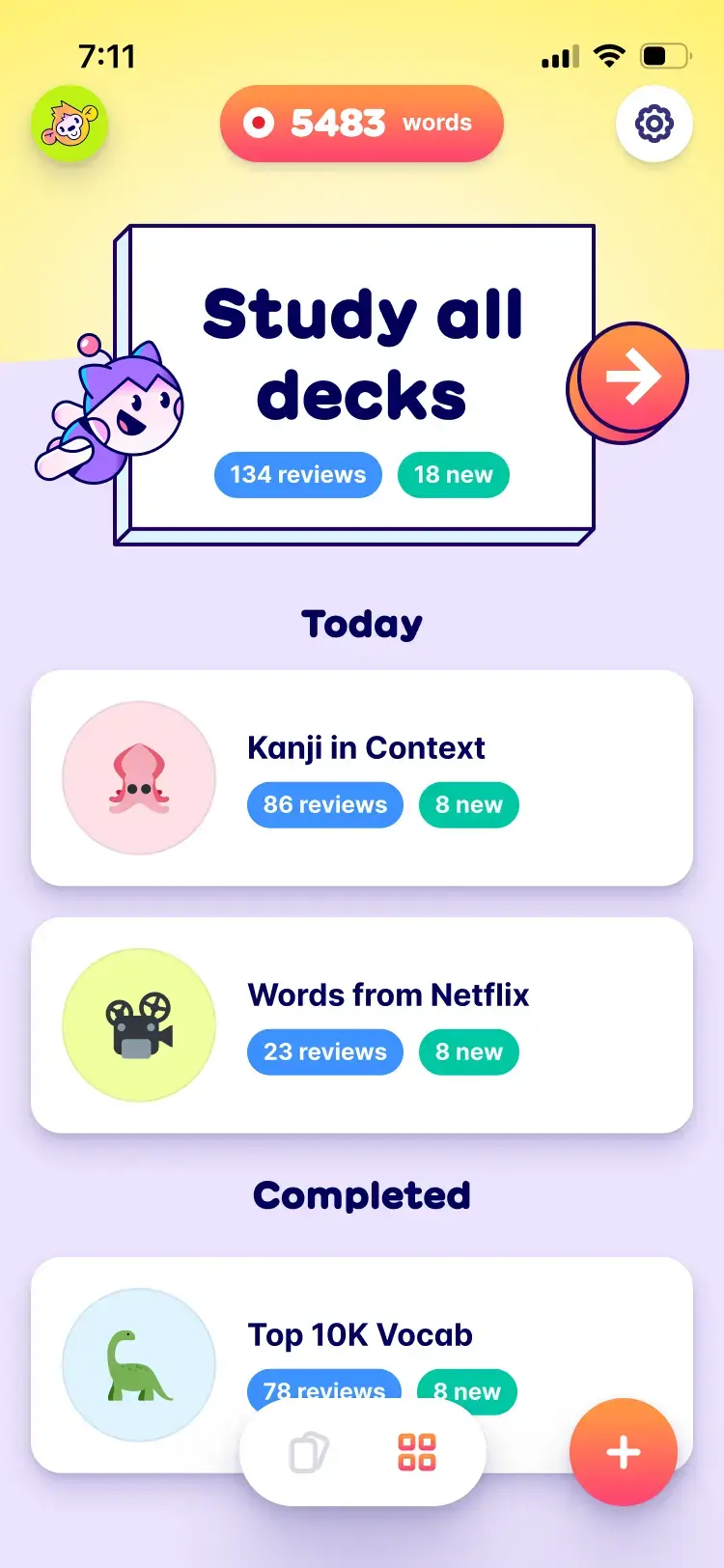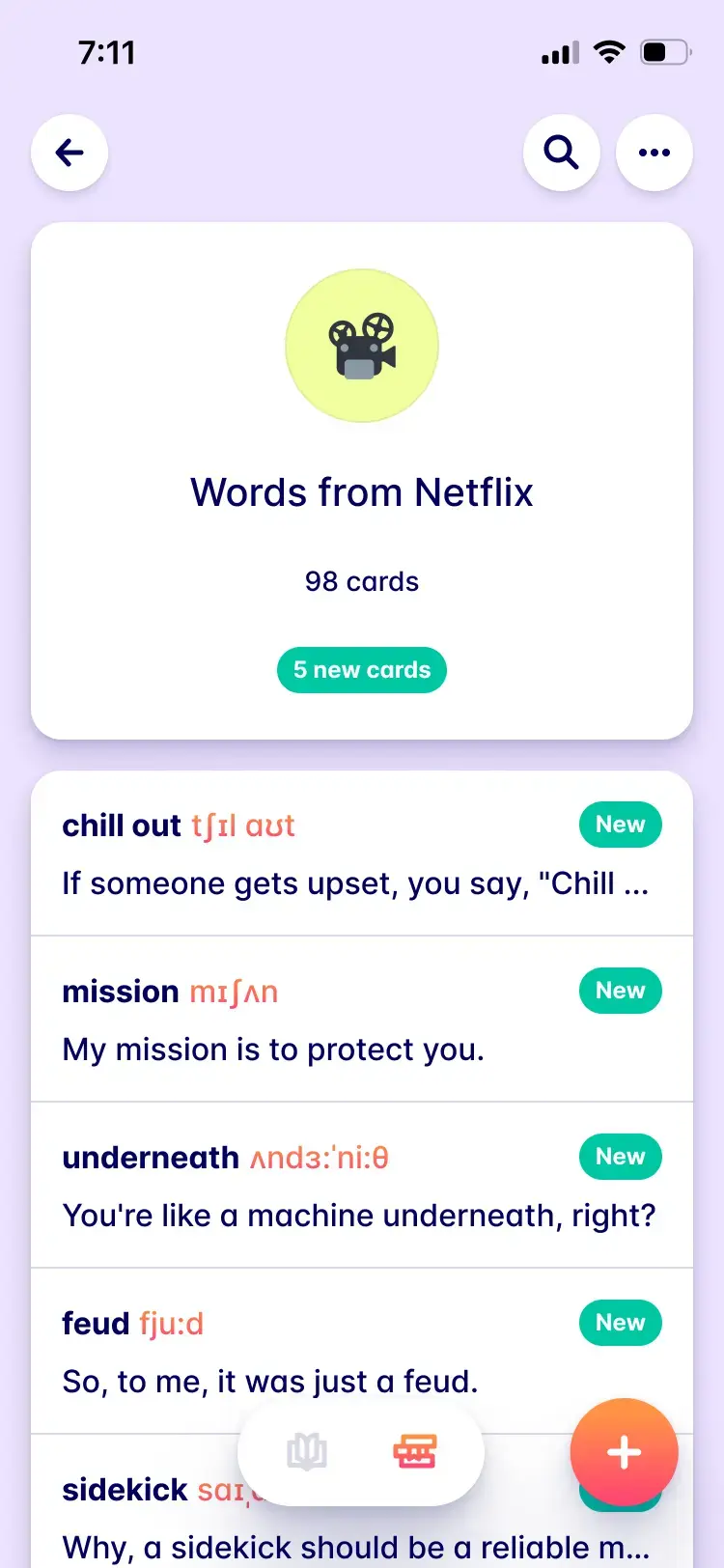 Choose content that interests you, then effortlessly create flashcards directly from that content. Each new word you learn increases your understanding.